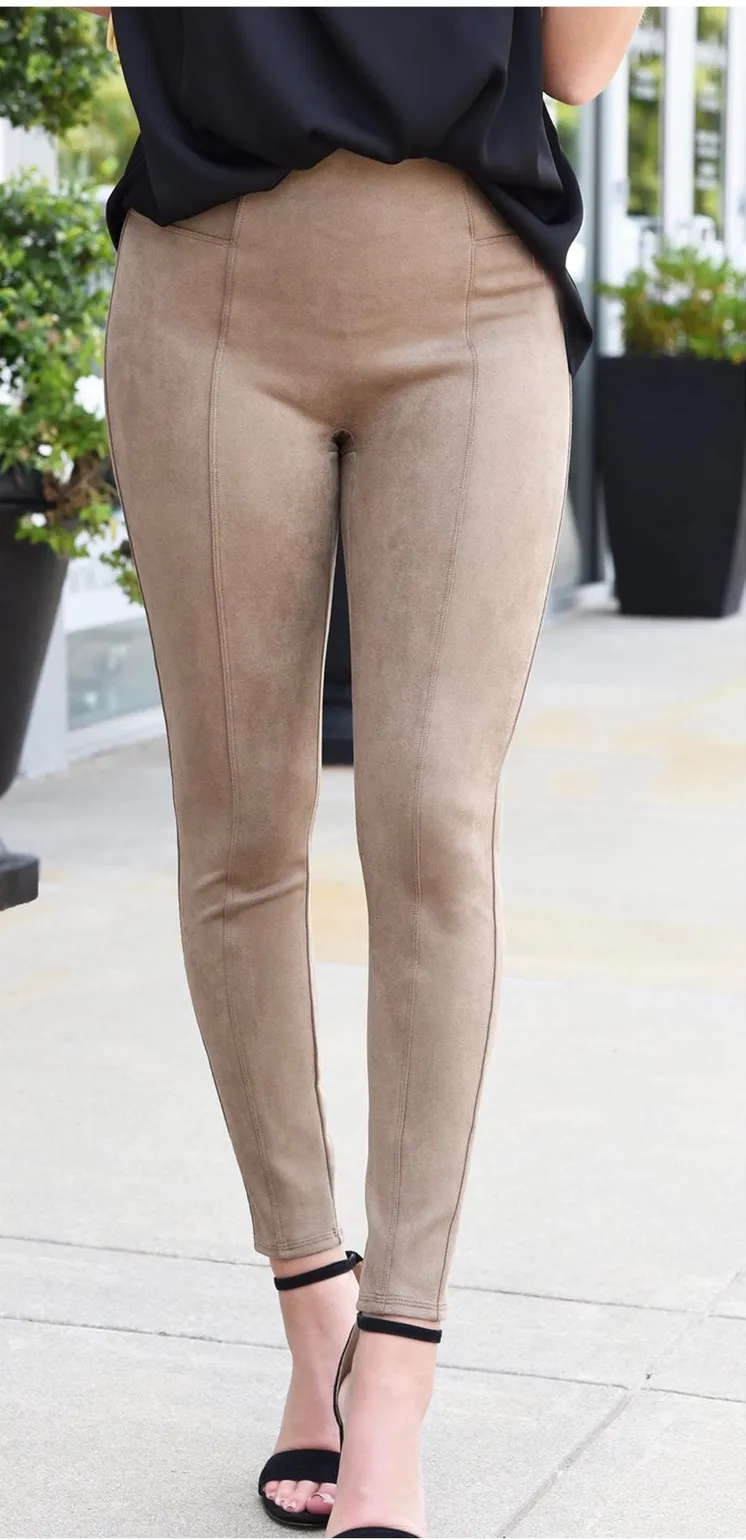 Spanx Faux Suede Leggings Small Tan High Rise Stretch Neutral Like new condition Introducing Fau... Show more