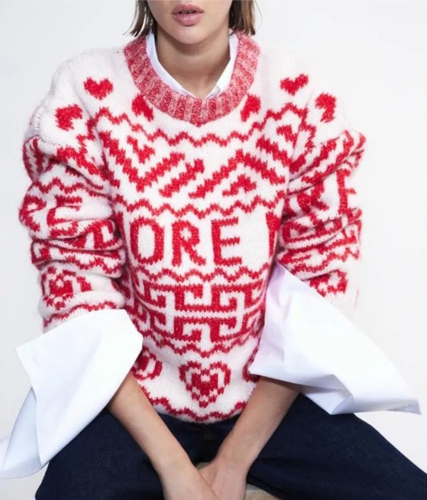 H&M Jacquard-knit Sweater Red White Amore Hearts Size XL Blogger FAVE - $50 - From E