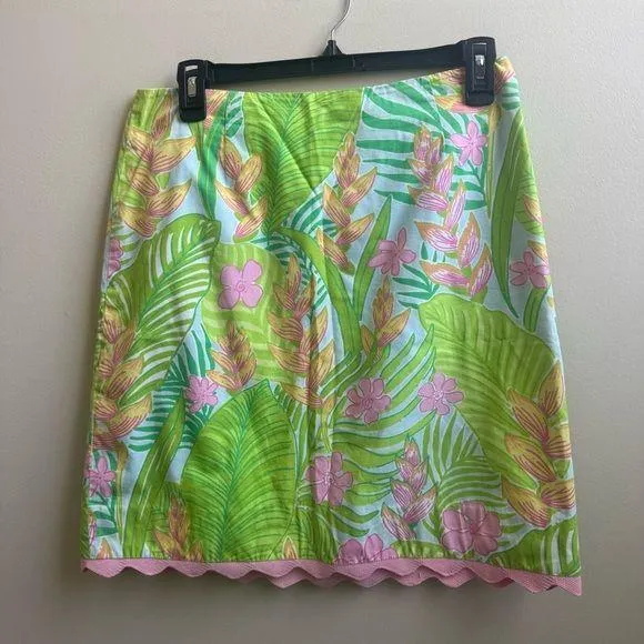 Lilly Pulitzer vintage palm leaf floral Scalloped hem skirt Size 4 Zip closure Lined Preowned