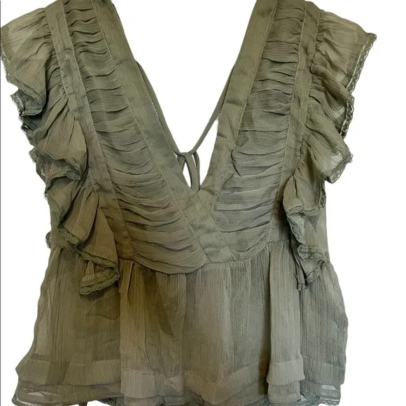 Forever 21 sage Ruched Chiffon Top in medium good condition