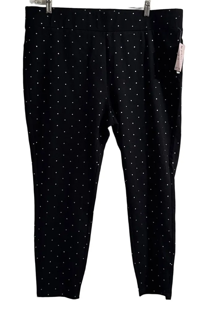 Stylish black pants with white polka dots. Comfortable fit. Perfect for casual wear. Inseam 27” inse... Show more