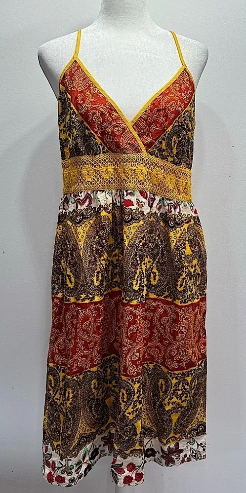 Daytrip boho slip sundress-adjustable spaghetti strap yellow, rust, black, ivory and other jewel ton... Show more