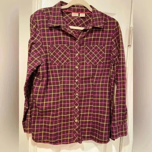 L.L. Bean Purple Pink Cotton Plaid Flannel Roll Tab Sleeve Button Down Size S - $24 - From Lindsey