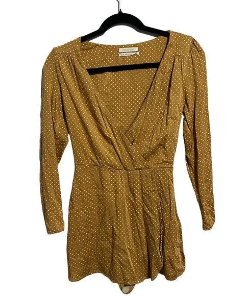 Urban Outfitters Long Sleeve Romper Size small Mustard yellow with polka dots Rayon and spandex De... Show more