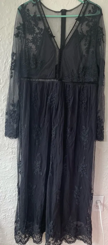 Blackfloral embroidered crochet lace v-neck long sleeve maxi dress; size 1X Black - $39 - From Kate