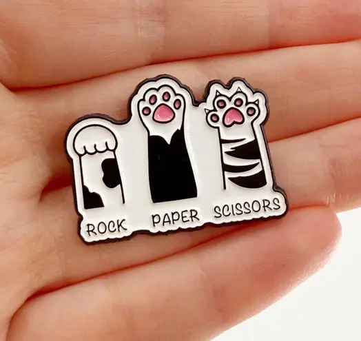 Rock Paper Scissors Cat Paw Enamel Pin: Funny Badge White - $15 - From Rachel