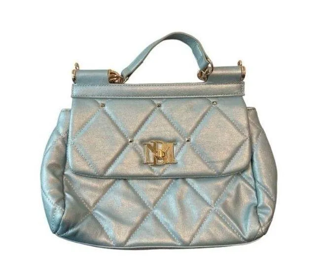 This lovely light aqua metallic convertible handbag stands out from the rest with quilted stitching... Show more