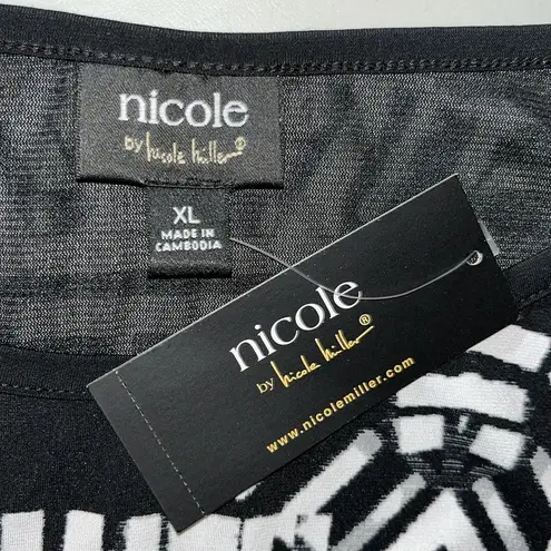Nicole by Nicole Miller Size XL Black, White & Gray Printed Blouson Dress. 3/4 Sleeves with Cut-Outs... Show more