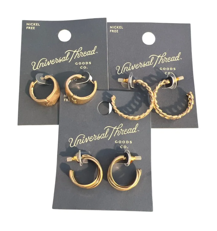 Add a touch of elegance to your outfit with these Universal Thread gold-tone hoop earrings. Each set... Show more