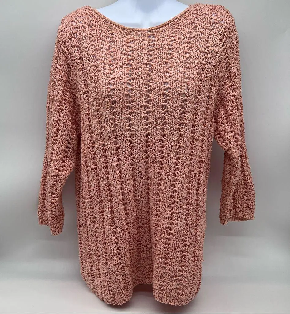 Dana Buchman Peach Open Pull Over Cotton Blend Ribbon Knit Top w/3/4 Sleeves-L Orange Size L - $24 - From Jacqueline