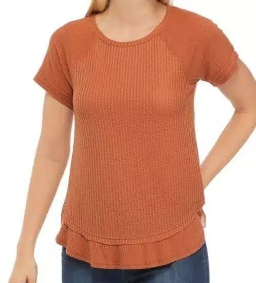 Love, Fire Juniors Orange Short Sleeve Waffle Knit Top Size M EUC Raglan sleeves, round neck