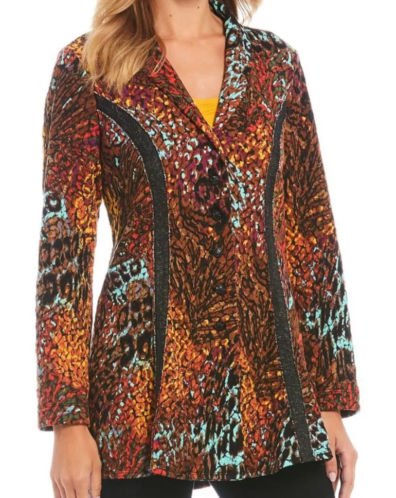 EUC Ali Miles Bohemian Lagenlook Mixed Animal Floral Print Earth Tone Jacket Blazer. Size • Fla... Show more