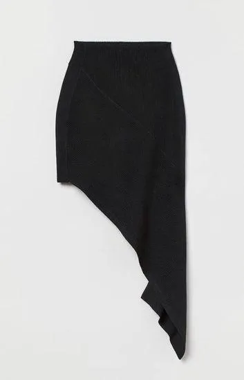 Asymmetric skirt in soft, rib-knit black fabric made from recycled polyester. Wide waistband with co... Show more