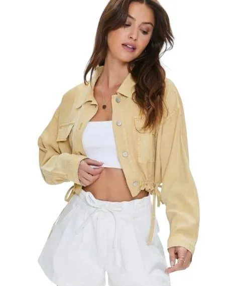 A twill jacket featuring button-front closures, dropped long sleeves, flap chest pockets, a basic co... Show more
