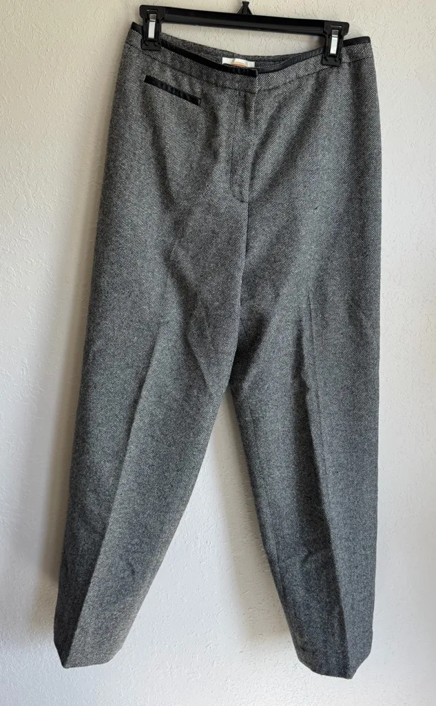 Good condition, eye from hook and eye loose on bottom as shown, 100% wool Shell, high waisted slim t... Show more