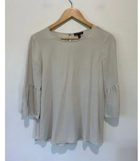 Eileen Fisher blouse womens size XXS cream silk round neck with button closure in back 3/4 bell slee... Show more