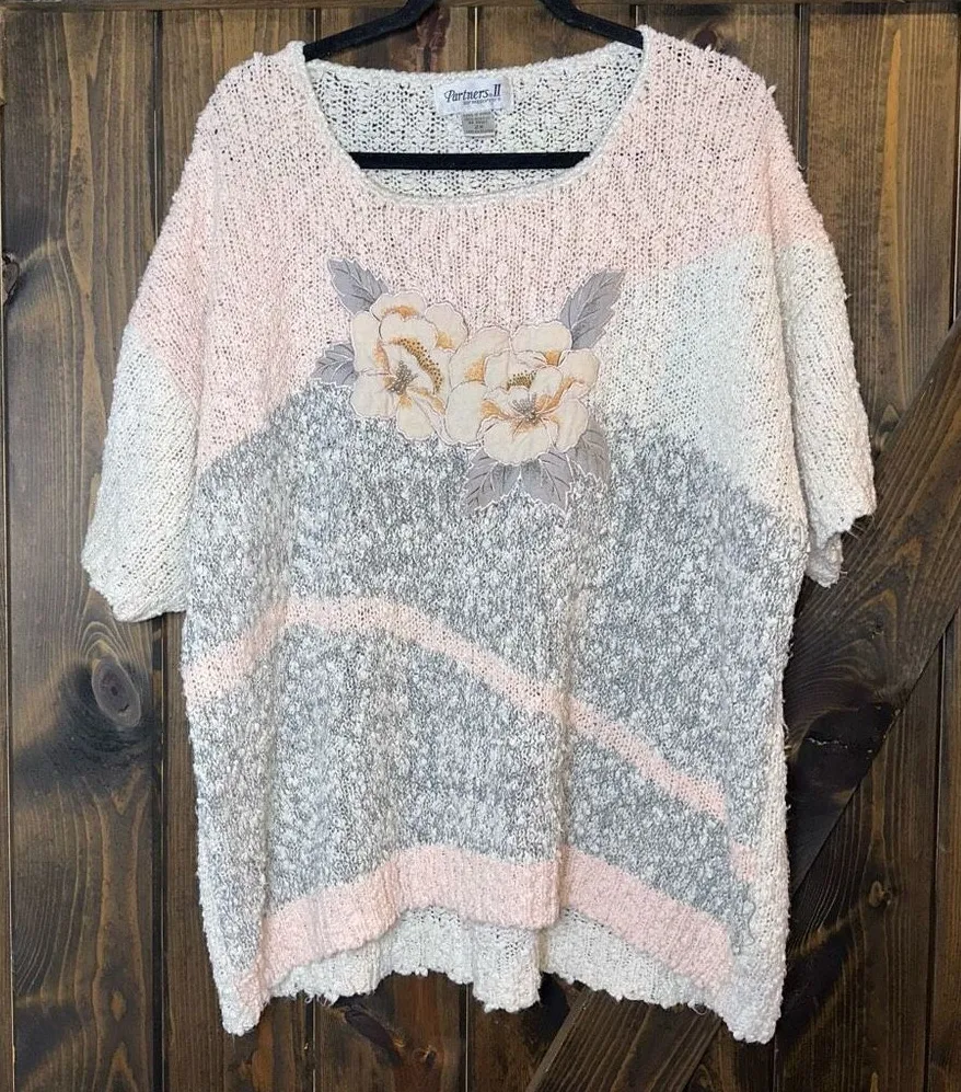 VTG Partners by Mervyn's Floral Knit Cottagcore Boucle Sweater Pink Size 2X - $27 - From Latoya