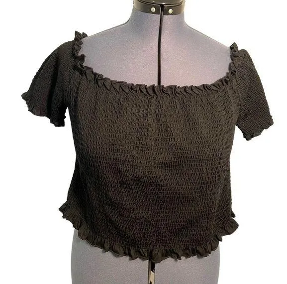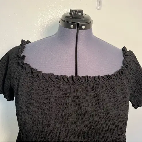 Great condition. Say what? Smocked off shoulder top. Short sleeve. Black. Plus size 1X. 65% cotton,... Show more