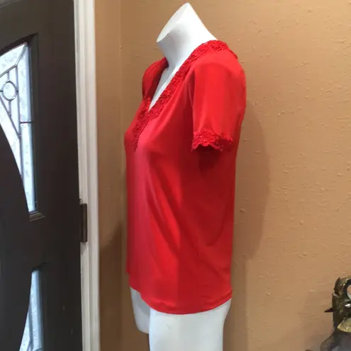 Karl Lagerfield v neck embroidered short sleeve blouse nwt Red Size XXS - $28 - From Erika