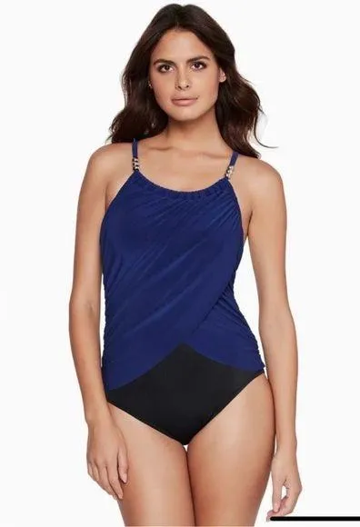 Magicsuit by Miraclesuit Lisa One Piece Swimsuit Size US 8 Color: blue & black (ultramarine) Retail... Show more