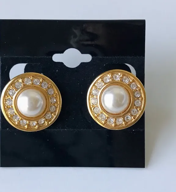 Vintage Gold Tone Round Faux Pearl Clip On Earrings - $15 - From Rachael