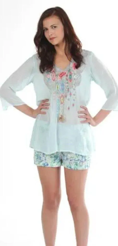 Johnny Was Women’s Floral Embroidered V-Neck Blouse Top Sheer in Mint Green 1X - $55 - From Elmee