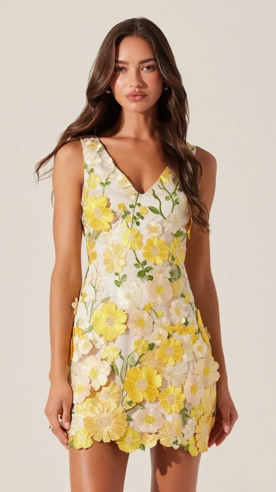 Floral appliqué mini dress Sleeveless dress, V-neckline at front & back Fully lined, concealed side... Show more