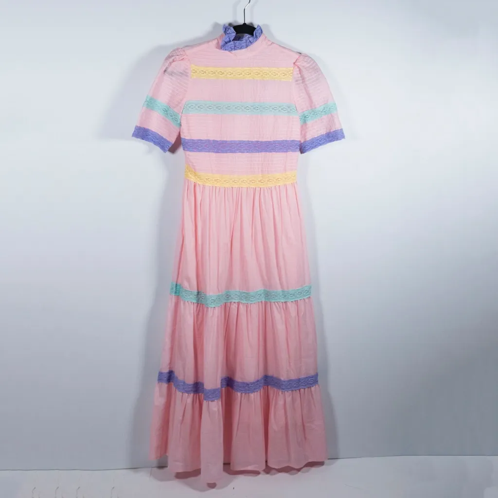 NEW Olivia Rubin Alia Cotton Lightweight Tiered Lace Trim Mock Neck Maxi Dress 0 Lightweight, non-stretch plain weave Tiered lace trim Ruffled neckline and short puff sleeves Pintucks at bodice New with tags! [Hou]