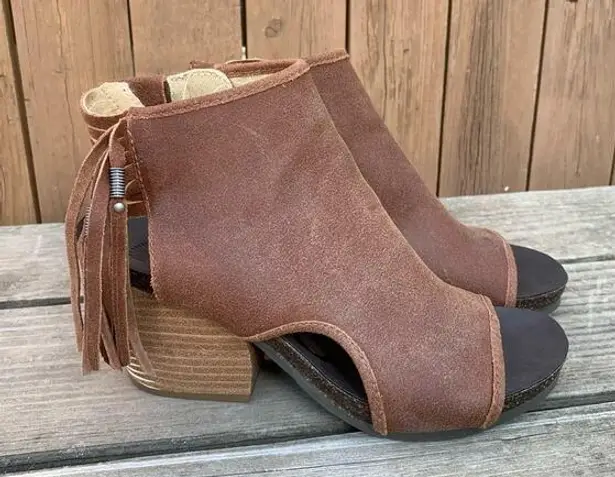 OTBT Free Spirit Open Toe Booties Fringe Suede 7.5M Brown Size 7.5 - $50 - From Prairie