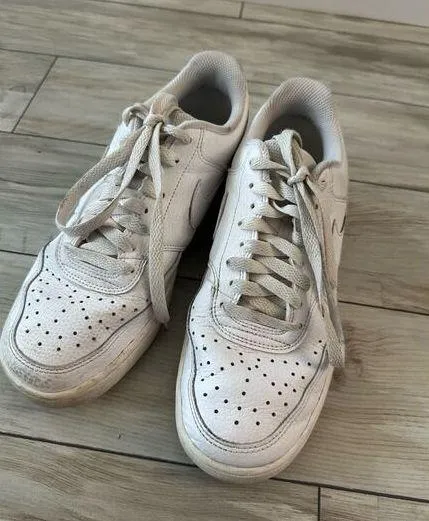 Nike Women's 8 Court Vision Low Triple White Sneakers Good Used Condition. See photos for wear CD... Show more