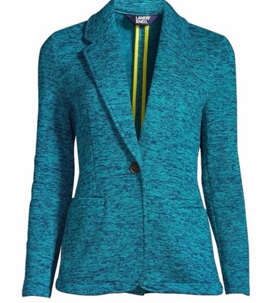 Chic teal heather blazer with a single button closure. Features a classic lapel and front pockets. I... Show more