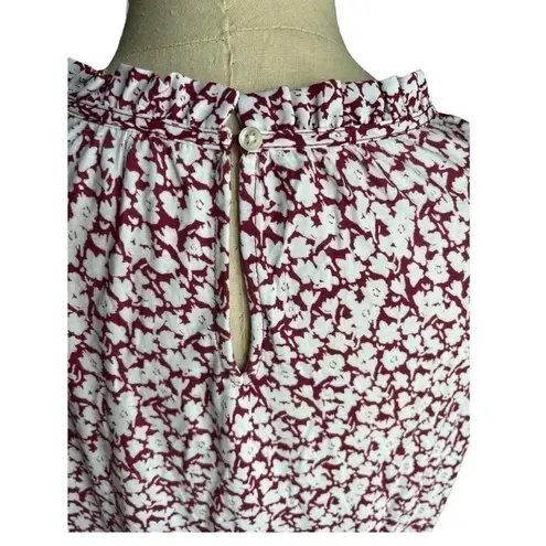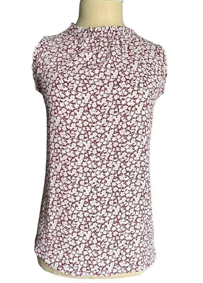 Beautiful LOFT floral ruffle gathered neck mixed media blouse in size small petites Color is listed... Show more