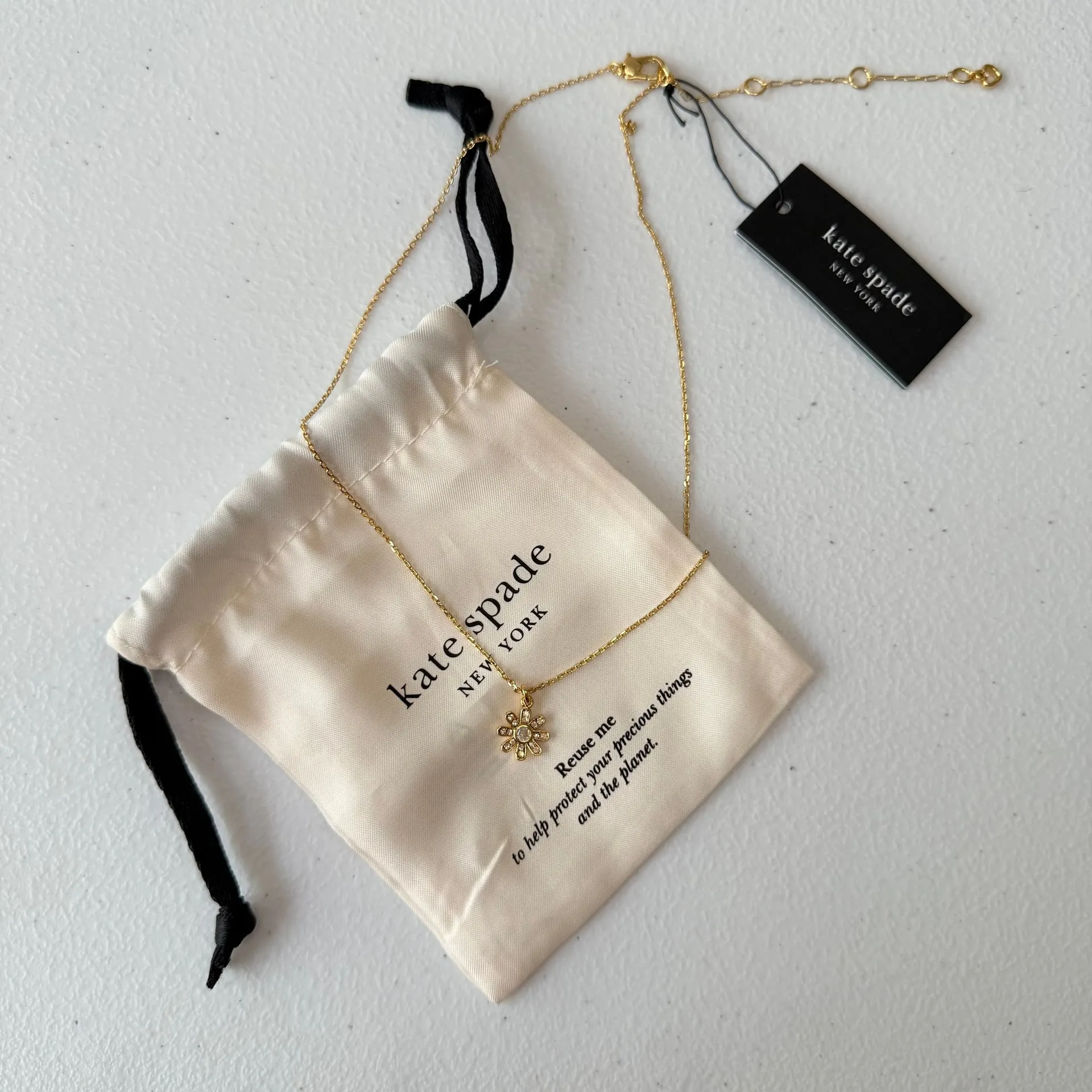 This charming Kate Spade Flower Stud Necklace features a delicate gold-tone chain and a beautiful fl... Show more
