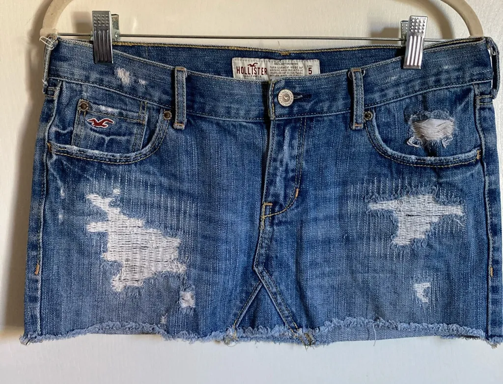 Vintage Y2K Hollister Medium Wash Distressed Ripped Raw Hem Micro Denim Skirt Excellent Condition W... Show more