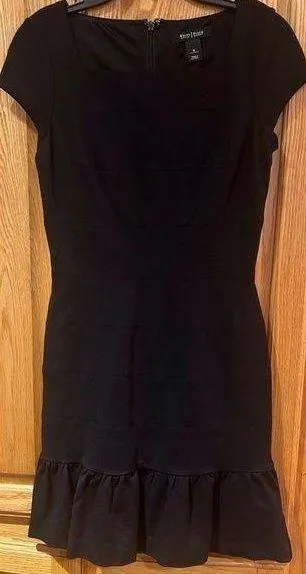 I’m selling a White House Black Market Ponte Knit Square Neck Ruffle Mini Dress in Black Size 0 for... Show more