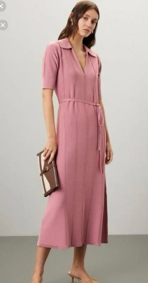 Features: Brand: Adam Lippes Collective Type: Dress Size: Large Color: Pink Knit Collared Collared Neckline Tie Waist Midi Dress Channel understated elegance in this Adam Lippes Collective pink knit dress, tailored in a soft, stretch-knit blend that effortlessly balances comfort and polish. The collared neckline lends a classic, refined touch, while the short sleeves and midi length create a versatile silhouette ideal for day-to-evening wear. A self-tie waist cinches gently, flattering your figure and offering customizable fit in size Large. The pull-on style ensures easy wear, and the luxe knit fabric drapes smoothly across the body . At about 49″ from shoulder to hem, it offers graceful movement without compromising its sleek profile Rent the Runway . Pre-owned, in good condition See pictures for all details Thank you for shopping with sipsipseller