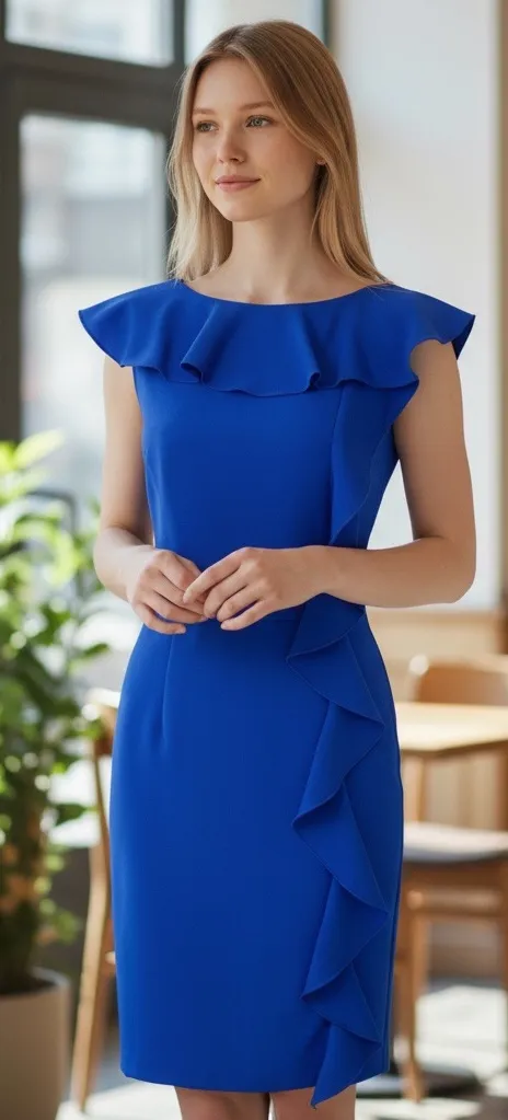 Calvin Klein Royal Blue Ruffled Sheath Dress. Gorgeous dress! Sleeveless style. Stretchy, fully line... Show more