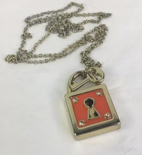 Pink Lock & Gold Key Pendant Necklace Cute Charm Chain Statement Jewelry - $12 - From alicia