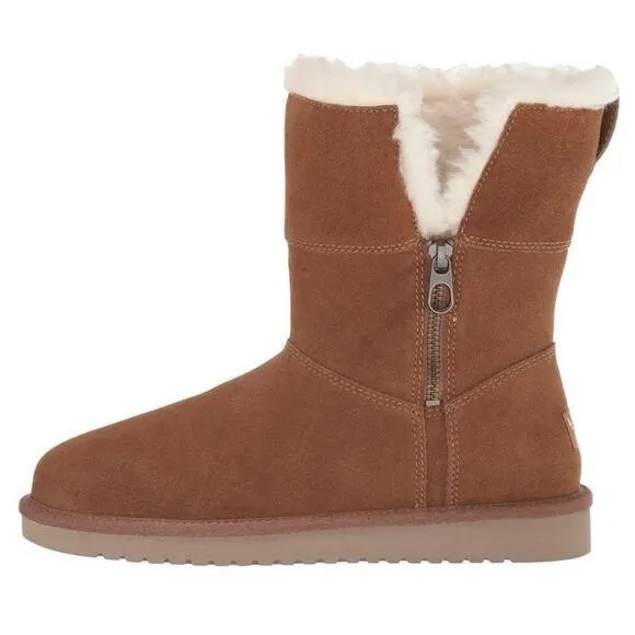 Koolaburra by UGG Aribel Short Boot women’s size 7 chestnut brown tan EUC Paid $99.99, maybe worn once! Multitasking mavens, rejoice! The Aribel Short was designed to keep up with your jam-packed schedule, crafted with an oversized zipper for easy on and off. Don’t worry, we cued up the same iconic warmth and comfort as the original Koola Short, with a soft suede upper and plush, faux fur lining and sockliner. Go ahead. Slip on and take off. Short, Pull-on Boot Suede upper Open topline, Oversized zipper detail Lateral side zipper Faux fur lining Wool sockliner or 17mm Poly-wool blend sockliner, 80% polyester, 20% wool Molded EVA midsole EVA outsole 7.5" shaft height Shaft circumference: 15.0" RN 88276 This product contains real fur from sheep or lamb Fur may be sourced from Australia, Ireland, the United Kingdom, or the United States It has been artificially dyed and treated.