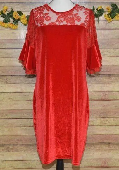 This elegant women's red velvet midi sheath dress features exquisite sheer floral lace short bell sleeves and a flattering back zip-up design, perfect for any special occasion. Plus size 3X ensures a comfortable fit while maintaining a sophisticated silhouette. • Red velvet fabric • Sheer floral lace sleeves • Midi sheath design • Plus size 3X • Short bell sleeves • Back zip-up closure Location: Section 28 Please SEE measurements of the clothing items to insure fit! Measurements are in the last photo. To check measurements, measures a well fitting garment laying flat unstretched. We double the measurement for bust/chest/waist/hip/thigh and leg opening. Length is measured from shoulder to hem. Inseams are measured along the inseam. When you see TWO measurement for one area it is because the item has stretch and one is laying flat and the other is stretched. 🙂 Size: Womens 3X Condition: Pre-Owned Like New Excellent Condition Thanks for looking at my listing. I have been selling online for several years and take pride in the items that I am listing and feel they will make a great addition to someone's wardrobe or home. All the items I am listing have been checked by several people and do not have any flaws such as holes, rips, or stains. Any issues a piece may have will be disclosed and will be included in the photos.