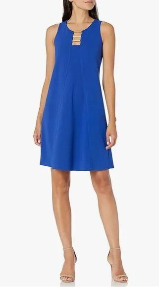 Nine West Cool Crepe Cut Out Neck Trapeze Dress in Blue, Size 4, New with Tag A cutout at the neckli... Show more