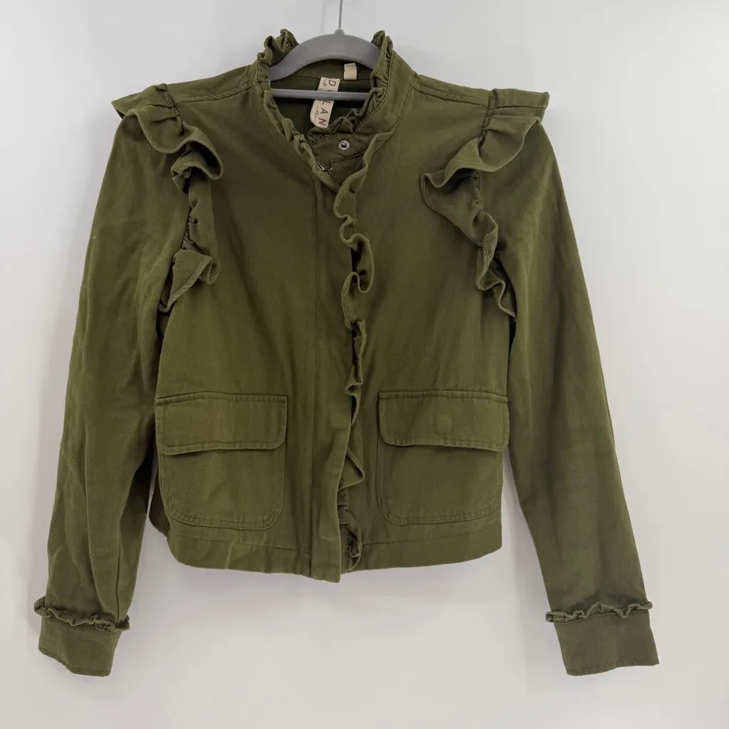 DOLAN left Coast Collection ruffled utility jacket Army green size XS crop length good preowned cond... Show more