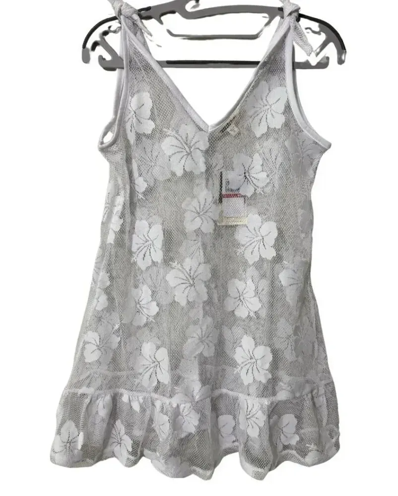 New with Tags! NWT! Women's MIKEN SWIM Mesh Ruffle Crochet White Swim Tank Dress Size XS White Flora... Show more