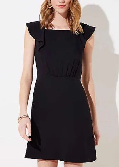 LOFT Black Ruffle Square Neckline Sleeveless Shift Little Black Dress NWT, size 12 Square Front N... Show more