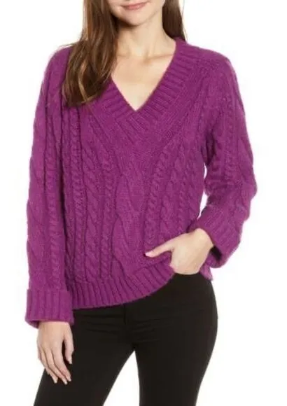 NEW WITH PARTIAL TAG Rebecca Minkoff Maxine Purple Oversized Cable Knit Mohair Wool Sweater Thick... Show more