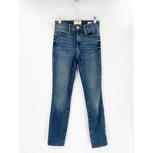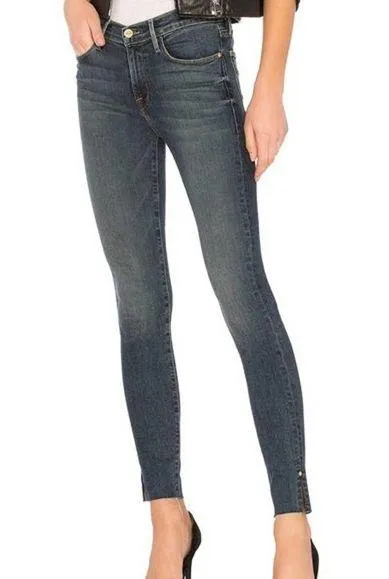 Crafted from premium denim in a medium to dark blue Pelton wash, these Le High Skinny jeans from Fra... Show more