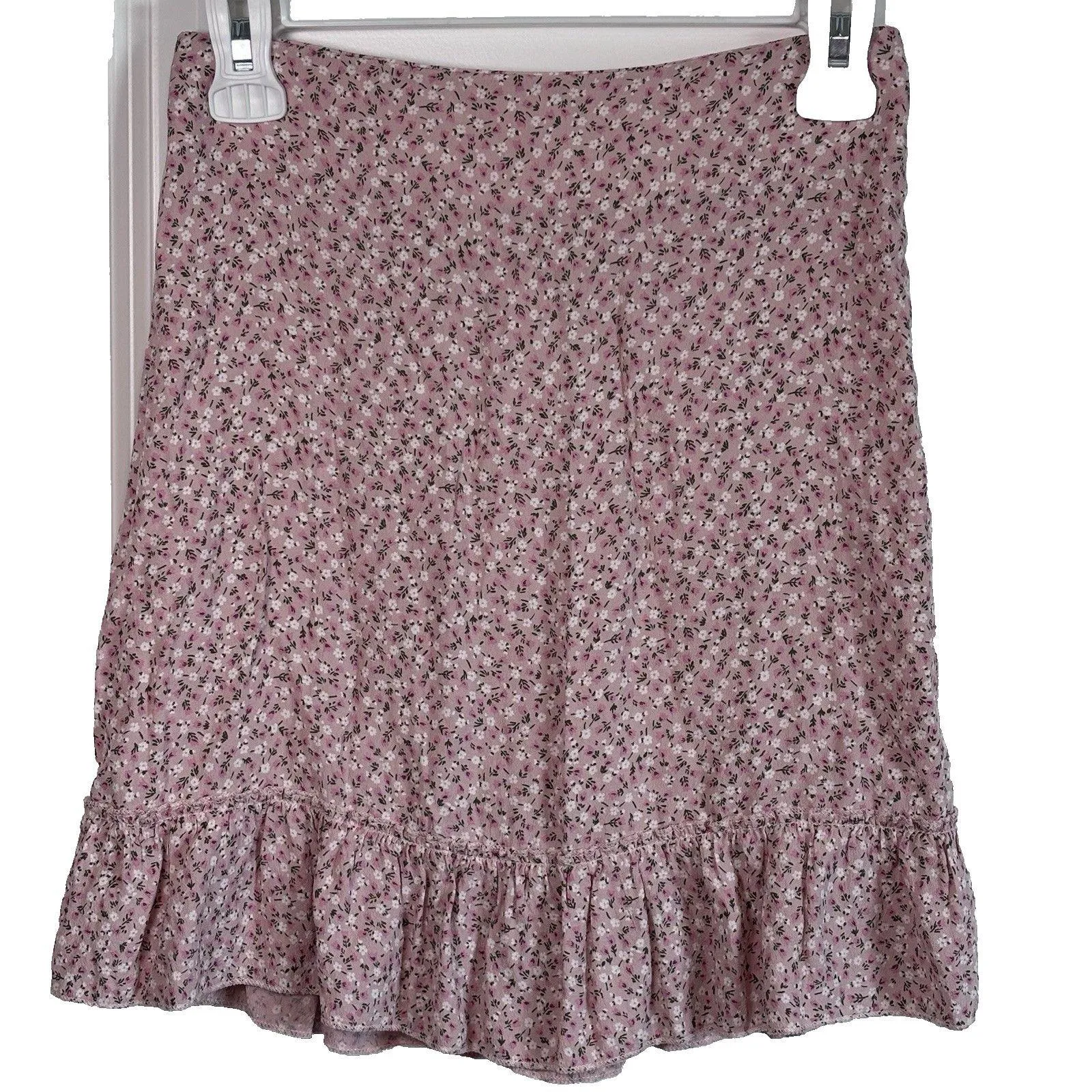 The Brandy Melville Pink Floral Cara Mini Skirt in size 3 is a stylish and cute ruffled mini skirt m... Show more