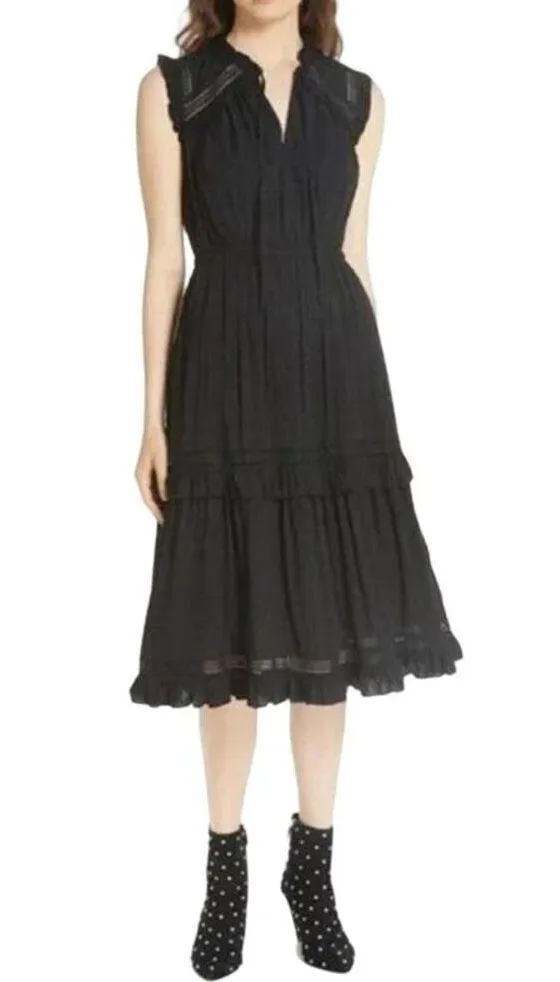 Kate Spade New York A-Line Dress Black Ruffle Embellishment Embroidered flowers by shoulder Sleevele... Show more