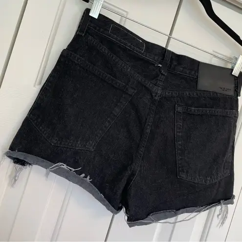 Rag & bone Maya Shorts Sz 29 Black wash denim Button fly High rise Distressed raw hem Logo patch on... Show more