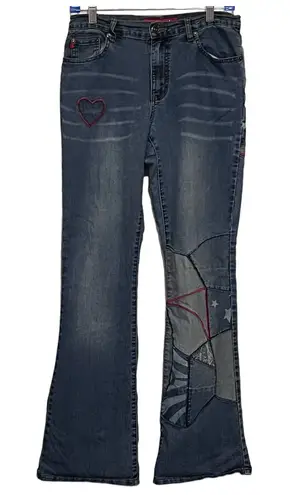 Zana-di Women's Jeans Red Blue Yellow Thread‎ Stars/Heart Flare Leg Size 5 - $34 - From Bonnie